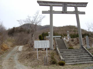 ここの登山口の目印は大鳥居である。 鳥居の手前にも数台駐車できる。 登山道は、右手の道を進んでも、鳥居をくぐ って、社務所の右手の階段を上がってもいける。 |