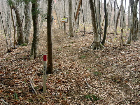 雑木林の中を進んだ後、急坂で階段となる。 |