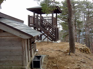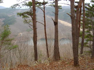 周りが山ばかりで見晴台に上っても見通しはあまりよくないが、海が少し見える。