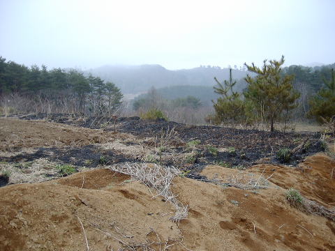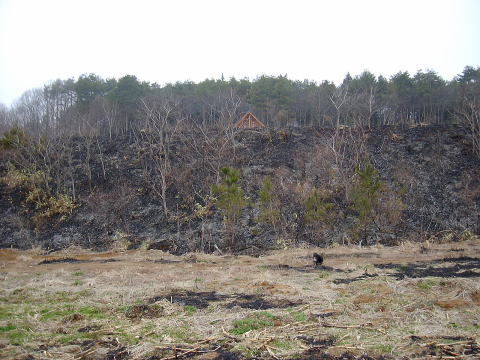 土手の上の様子 上から火をつけて、ゆっくりと下のほうも燃やした。 |
