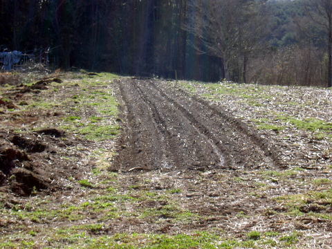 下の畑のトウモロコシを植えた部分を二列うなった。
