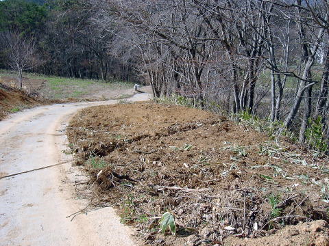 雑然としていたところを整地して、一部を進入路の予備として使用し、後に庭木や花などを植える予定である。