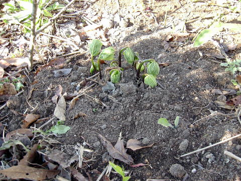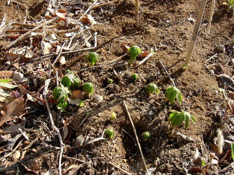 まだ大きい木々のつぼみは堅いが、雑木は葉が開きはじめ、植えた草類は芽が出てきた。
