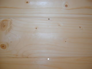 | 最後の1枚を除き東側は出来た。(北側から撮ったもの) | 釘はサネの内部でなく、見える位置に打った。 |